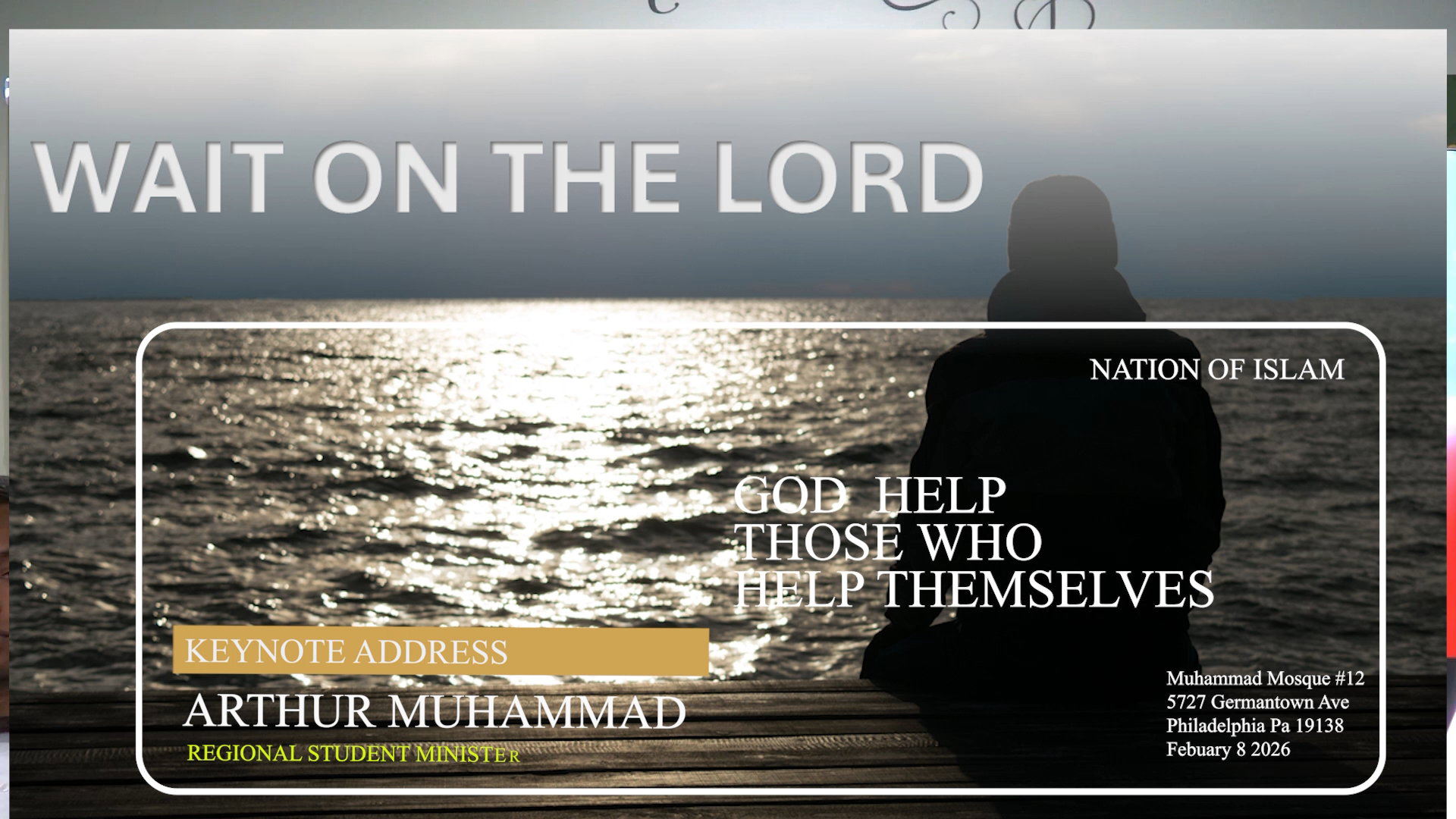 Visiting from Harlem, NY, Student Regional Minister Arthur Muhammad delivers a masterclass on Psalm 27:14: “Wait on the Lord; be of good courage”. He distinguishes between “Passive Waiting” (sitting at home with a welfare mentality) and “Active Waiting” (working on yourself, your credit, and your skills while anticipating a blessing) .